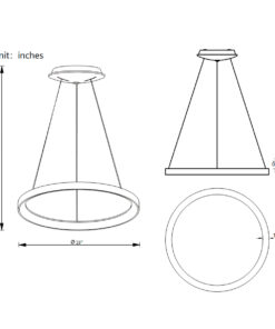 - Medidas: diámetro 23“ / alto de perfil 2,36”/ longitud de cable: 118” Florón Tubo diámetro 5”
